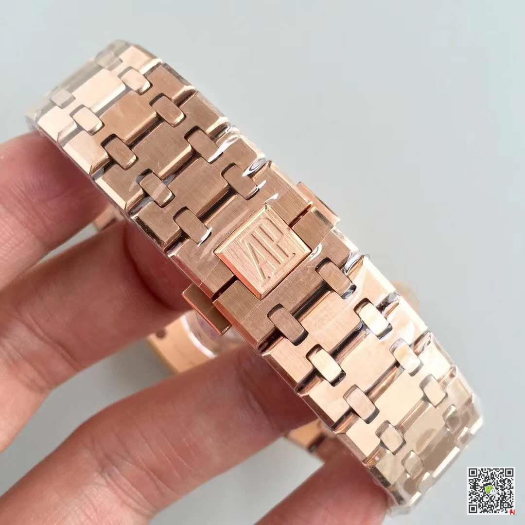 JF Factory Replica Audemars Piguet Royal Oak 15450 V5 Silver Dial Watch, 18K Rose Gold Case, Octagonal Outer Ring, Silver Dial with Fiber Lattice, High Consistency of Chamfering on Side of Strap, Uniform Angle for Each Strap; The drawing on the side of the watchband is also very regular, improving the overall texture. Audemars Piguet Royal Oak 15450 Rose Gold JF Factory V5 Silver Dial Replica Watch. Inside the clasp, there is a dark brown sandblasting surface with Audemars Piguet’s logo and English name on it. The original swissaudarth piguet 3120 automatic movement is accurate. The outer ring is polished beautifully, and the case and watchband are polished after being brushed. The 3 o’clock position shows the date.