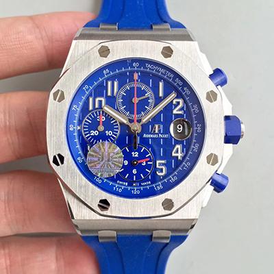Audemars Piguet Royal Oak Offshore Chronograph 26470 JF Factory V2 Blue Dial super clone watch, this series has become the best choice for many watch lovers. In terms of quality, whether it is material, movement or appearance, we strive to achieve the ultimate. Even in details, whether it is polishing, disk lines, lettering, etc, Audemars Piguet Royal Oak Offshore 26470 replica watch has reached a high degree of restoration. The word “replica” represents the highest standard in the industry. This watch uses the original data to open the mold, which truly achieves a 1:1 replica with the original, and its appearance treatment details are basically the same as those of the genuine watch. If you want to spend less money and get what you like, then the super clone watch in 2025 can achieve “95% appearance +80% performance”; This must be the perfect choice! But if you care about its preservation rate and demand its perfection, then I think the genuine product is still the only answer to this question. (But in fact, genuine products also have shortcomings.) Why are replica watches popular? Why are more and more people willing to accept and buy it? Because here, you only need to pay less than one tenth of the original price, or even lower, to buy a product that is extremely close to the original and even difficult to distinguish Audemars Piguet 26470ST.OO.A030CA.01 Replica Watch – Super clone watches.