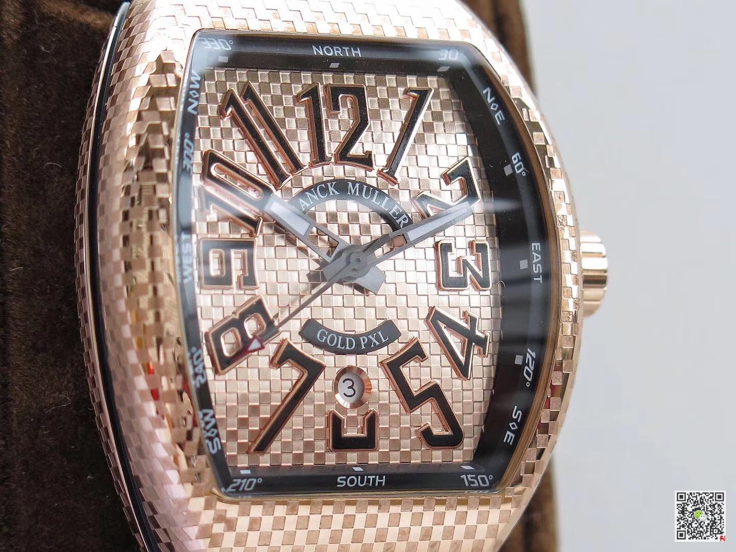 Franck Muller Vanguard V45 Rose Gold Dial super clone watch, this series has become the best choice for many watch lovers. In terms of quality, whether it is material, movement or appearance, we strive to achieve the ultimate. Even in details, whether it is polishing, disk lines, lettering, etc, Franck Muller Vanguard V45 replica watch has reached a high degree of restoration. The word “replica” represents the highest standard in the industry. This watch uses the original data to open the mold, which truly achieves a 1:1 replica with the original, and its appearance treatment details are basically the same as those of the genuine watch. If you want to spend less money and get what you like, then the super clone watch in 2025 can achieve “95% appearance +80% performance”; This must be the perfect choice! But if you care about its preservation rate and demand its perfection, then I think the genuine product is still the only answer to this question. (But in fact, genuine products also have shortcomings.) Why are replica watches popular? Why are more and more people willing to accept and buy it? Because here, you only need to pay less than one tenth of the original price, or even lower, to buy a product that is extremely close to the original and even difficult to distinguish Franck Muller V45 SC DT BLACK PXL Gold Replica Watch – Super clone watches.