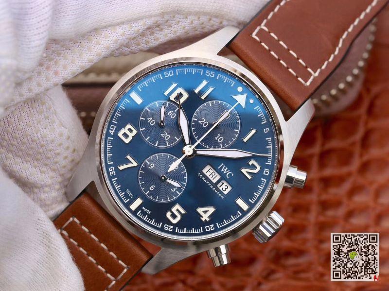 ZF factory replica IWC Pilot Chronograph Edition Le Petit Prince IW377714 Blue Dial watches equip with Swiss ETA 7750 automatic mechanical movement that same functions as genuine movement. The case made of 316L stainless steel materials, and the size is 43mm x 15mm, dial shape is round shape, watch case bottom cover is dense and not transparent. The dial scales is Arabic numerals and dial color is night blue color that is a very mysterious and elegant color. IWC Pilot Chronograph Edition Le Petit Prince IW377714 ZF Factory Blue Dial Replica Watch. The watch crown adopt triple-crown that include chronograph button. Watch crystal made of sapphire crystal that is anti-scratch and high transparency. The strap adopt brown calfskin leather strap with tang buckle. And functions display include date display, week display, chronograph, and normally hours, minutes, seconds display.