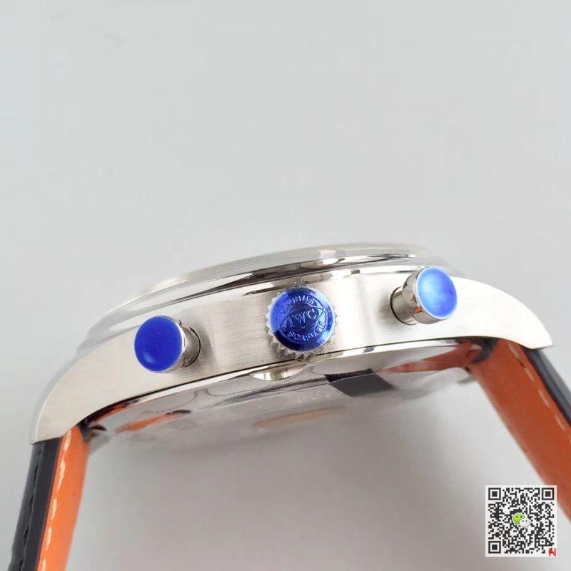ZF Factory replica IWC Portugieser Chronograph Classic IW390404 Anthracite Dial watch has a dial diameter of 42mm, front and rear mirror surfaces are made of real sapphire crystal glass, and are treated by anti-glare technology. The dial surface is gray metal radial pattern, and the exquisite patterns are clear and full. The 12-point clock is equipped with a complicated timing time division display small dish, the 3-point clock is equipped with a calendar display function, the 6-point clock is equipped with a second hand to display small dish, the time marker is of a time division double-hand structure, and is equipped with a large timing second hand. All time division scales on the dial surface are identified by digital structures. IWC Portugieser Chronograph Classic IW390404 ZF Factory Anthracite Dial Replica Watch. Through the bottom cover, we can see that the manufacturing process and polishing of the movement are very exquisite. The shell is forged from 316 fine steel material, and the surface is treated by a combination of polishing and wire drawing process. The timing on/off button is set at 2 points, the watch adjusting handle is set at 3 points, and the timing stop/reset button is set at 4 points. All structures are consistent with the original. The watchband is made of imported calf leather and is made by high-precision hand sewing. The clasp is forged of fine steel material consistent with the shell, and the structure is the original folding clasp.
