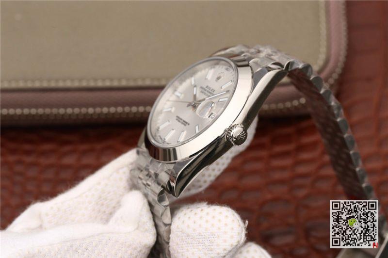 EW Factory Replica Rolex Datejust 41MM 116200 White Dial Watch, stainless steel brushed polished case, scratch-resistant anti-glare sapphire crystal glass, white radiant dial, black minute scale on the outer ring of the disk, with solid black-edged hour markers filled with white luminous material, and hour hand and The minute hand, the 3-point position window is 2.5 times enlarged to display the calendar. Rolex Datejust 41MM 116200 EW Factory White Dial Replica Watch. The steel crown and the triangular pit pattern engrave the Rolex crown logo. The screw-in type triangular pit pattern polishing bottom case, the bottom ring drawing process is very delicate. Swiss ETA2836 Automatic Movement, the movement function is the same as the original. Five-chain stainless steel strap with steel folding clasp. The buckle engraves the Rolex crown logo.
