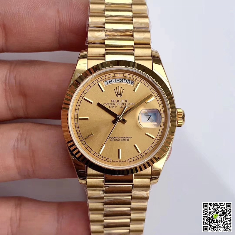 Rolex Day-Date M128238-0045 Yellow Gold EW Factory Champagne Dial super clone watch, this series has become the best choice for many watch lovers. In terms of quality, whether it is material, movement or appearance, we strive to achieve the ultimate. Even in details, whether it is polishing, disk lines, lettering, etc, Rolex Day-Date M128238-0045 replica watch has reached a high degree of restoration. The word “replica” represents the highest standard in the industry. This watch uses the original data to open the mold, which truly achieves a 1:1 replica with the original, and its appearance treatment details are basically the same as those of the genuine watch. If you want to spend less money and get what you like, then the super clone watch in 2025 can achieve “95% appearance +80% performance”; This must be the perfect choice! But if you care about its preservation rate and demand its perfection, then I think the genuine product is still the only answer to this question. (But in fact, genuine products also have shortcomings.) Why are replica watches popular? Why are more and more people willing to accept and buy it? Because here, you only need to pay less than one tenth of the original price, or even lower, to buy a product that is extremely close to the original and even difficult to distinguish EW Factory Rolex M128238-0045 Replica Watch – Super clone watches.