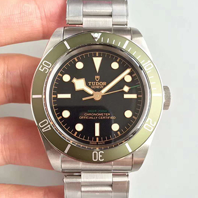 ZF Factory Replica Tudor Heritage Black Bay Green Harrods Special Edition 79230G Black Dial watch, the lid of the sapphire crystal glass mirror polished very well, the mirror looks very transparent, the two sides of the strap with willow nail inlay decoration, restore Tudor brand earlier design. The combination of the two highlights the firm and retro temperament of the watch. Tudor Heritage Black Bay Green Harrods Special Edition 79230G ZF Factory Black Dial Replica Watch. Olive green bezel is made of anodized aluminum in accordance with the original package. The physical properties (corrosion resistance, high hardness) of this material are very stable. The color similarity of the ring mouth can reach 99%, and the effect is as good as that of the genuine product.