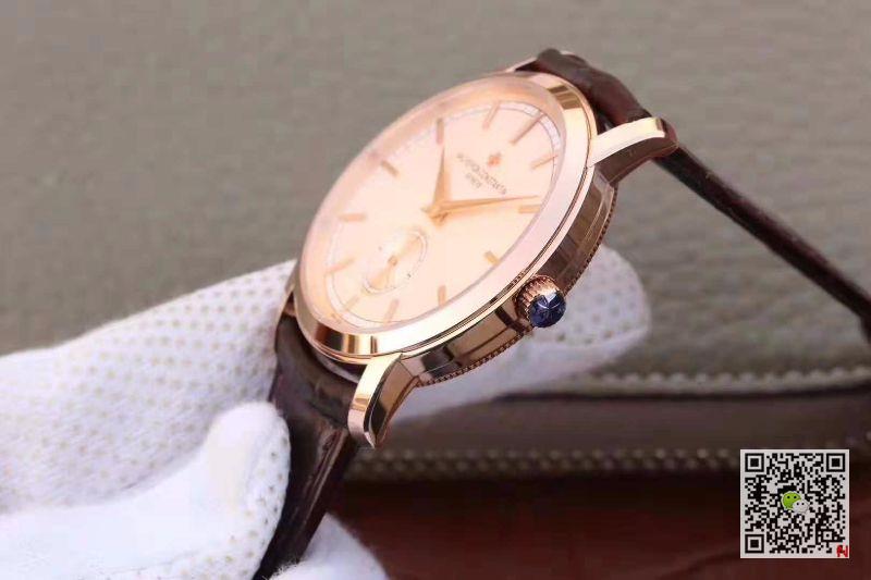 Replica Vacheron Constantin Traditionnelle 82172/000R-9382 18K Rose Gold Dial watches adopt Asian 23J automatic movement at 21600vph decorated to Calibre 1400 movement that has 65 hours power reserve. The decoration and structure on movement surface is the perfect embodiment of advanced watchmaking skills and exquisite craftsmanship. This watch use 18K rose gold plated stainless steel to make 38mm round watch case that elegant and slim appearance shows the tradition of Vacheron Constantin brand. Strip-shape stereoscopic time scales and dauphine pointers make read time clearly at a glance. Vacheron Constantin Traditionnelle 82172/000R-9382 18K Rose Gold Dial Replica Watch. Watch crown designed by anti-skidding pattern is through grinding technology treatment that texture is soft and lines are fluent. To keeps the hand from sliding during operation and promote the accuracy of watch operating. And equip with brown calfskin leather strap and 18K rose gold plated tang buckle, that make the whole watch more perfect.